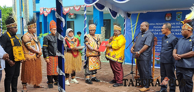 Diiringi konvoi budaya nusantara, prosesi penyerahan salinan penetapan Gubernur dan Wakil Gubernur Papua Barat terpilih ke DPR Papua Barat hanya berselang empat jam setelah KPU Papua Barat selesai menggelar rapat pleno terbuka di Aula Husni Kamil KPU Papua Barat, Arfai.