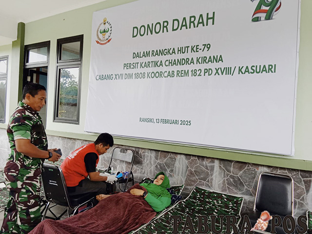 Ransiki, TP – Persit Kartika Candra Kirana Cabang XVII Kodim 1808 Mansel di bawah naungan Koorcab Danrem 182 PD XVIII Kasuari menggelar aksi kemanusiaan donor darah dan penyuluhan kesehatan, di Mako Komdim 1808 Mansel, di Kampung Tobou, Ransiki, Kamis (13/2).