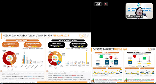 “Ekspor Papua Barat pada bulan ini mengalami penurunan sebesar 3,87 persen. Namun, mengalami peningkatan secara tahunan sebesar 208,18 persen,” jelas Kepala BPS Papua Barat, Merry saat memaparkan data resmi statistik Maret 2025 yang diikuti Tabura Pos dalam rapat zoom, Selasa (8/4/2025).
