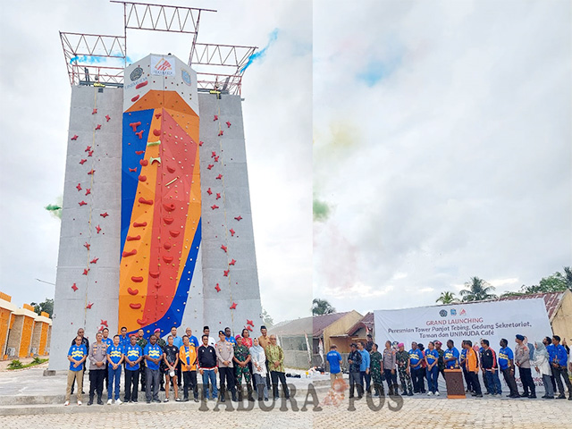 Sorong, TP – Gubernur Papua Barat Daya, Elisa Kambu beserta jajaran didampingi Rektor Universitas Pendidikan Muhammadiyah (Umumuda) Sorong, Dr. Rustamadji, M.Si meresmikan fasilitas tower panjat tebing skala internasional, pada Kamis (24/4/2025).
