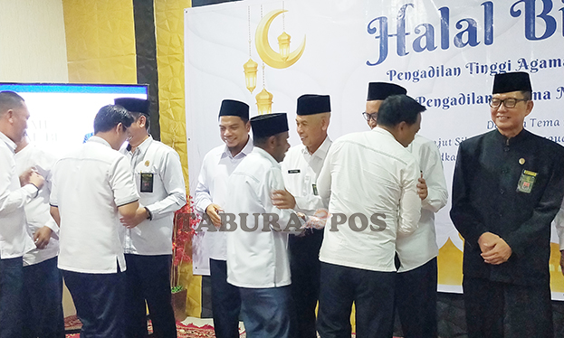 Halal Bihalal berlangsung di Aula Kantor PA Manokwari Kelas IB, turut dihadiri Ketua PTA Papua Barat, Ahmad Fathoni dan jajarannya, serta Ketua PA Manokwari Kelas IB, M. Syauky S. Dasy dan jajarannya.
