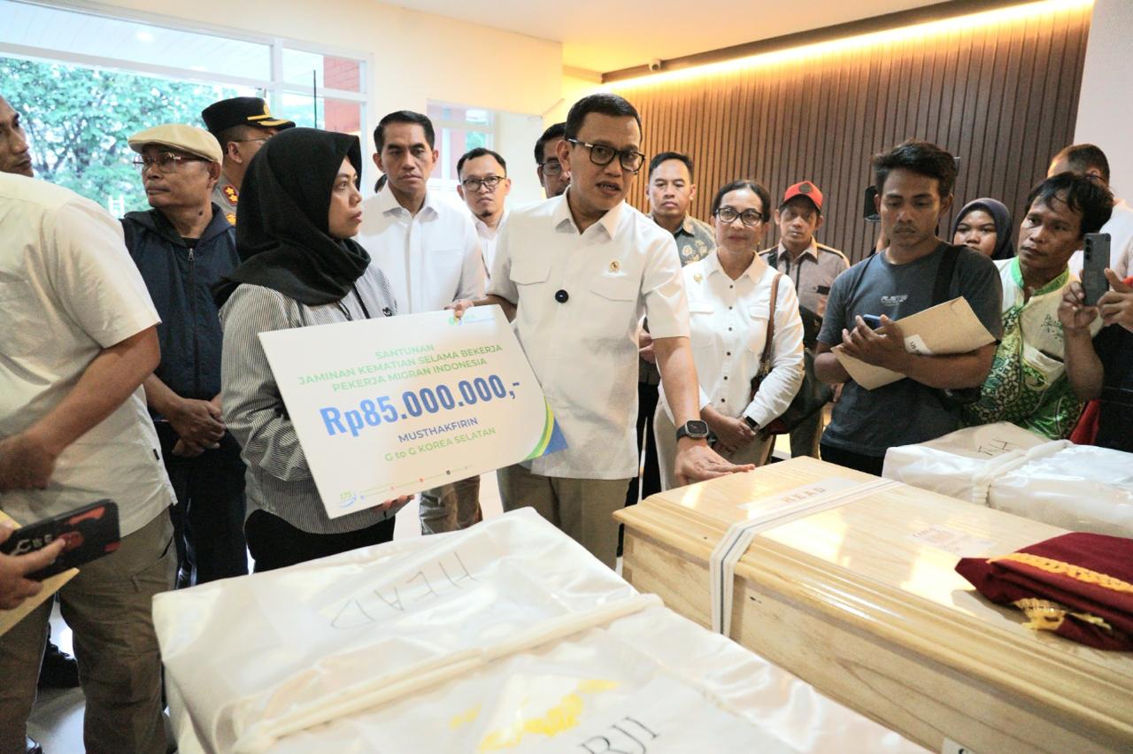 Penyerahan manfaat Jaminan Kematian ini menjadi penegasan atas pentingnya perlindungan menyeluruh terhadap pekerja, terutama PMI yang berkontribusi besar terhadap ekonomi nasional.