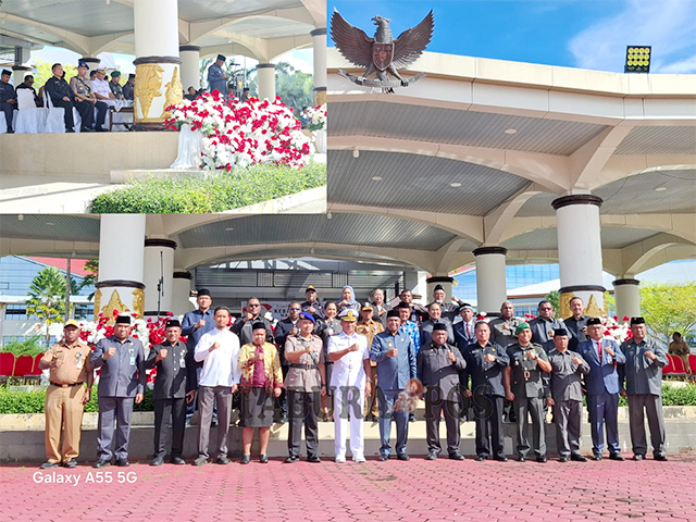 Wakil Gubernur Papua Barat, Mohamad Lakotani bersama pimpinan OPD dan Forkopimda Papua Barat foto bersama usai upacara bendera Harkitnas ke-117 Tahun 2025, Selasa (20/5/2025). TP/FSM.