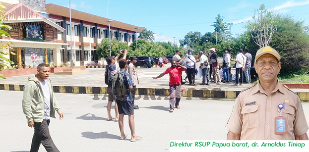 Direktur RSUP Papua Barat, dr. Arnoldus Tiniap langsung menemui para pengunjuk rasa yang dikawal sejumlah aparat keamanan.