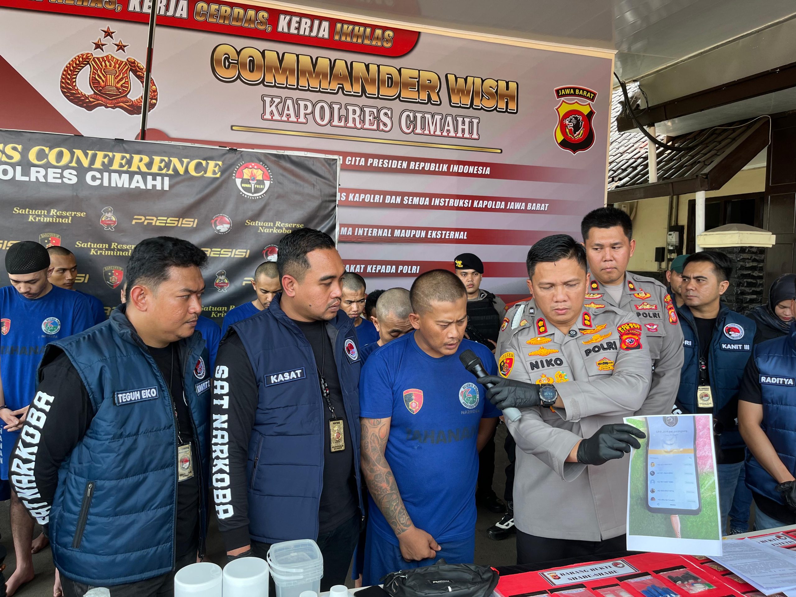 Cimahi, TP –Satresnarkoba Polres Cimahi berhasil mengungkap kasus tindak pidana narkotika, Jumat (30/5/2025). Polisi berhasil manangkap satu pelaku yang merupakan salahsatu anggota ormas Grib Jaya PAC Parongpong, Bandung Barat.Kabid Humas Polda Jabar, Kombes Hendra Rochmawan menyebut modus operandinya ialah melalui sistem tempel (menggunakan map) dan transaksi langsung.