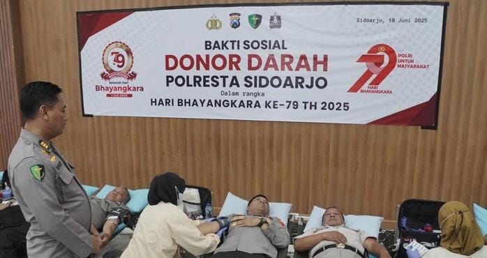 Kegiatan itu digelar di Gedung Serbaguna Polresta Sidoarjo, Selasa (10/6/2025), dan dibuka langsung Kapolresta Sidoarjo Kombes Christian Tobing didampingi Wakapolresta AKBP I Made Bayu Sutha Sartana.Ia mengatakan, kegiatan donor darah ini menjadi bagian dari rangkaian peringatan Hari Bhayangkara ke-79 sekaligus bentuk kepedulian jajaran Polri terhadap sesama.