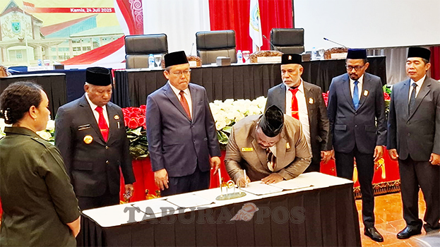 Penyampaian Laporan Hasil Pemeriksaan (LHP) Badan Pemeriksaan Keuangan (BPK) RI Perwakilan Papua Barat terhadap LKPD Papua Barat dilangsungkan dalam Rapat Paripurna DPR Papua Barat, di Aston Niu Hotel Manokwari, Kamis (24/7/2025) malam.