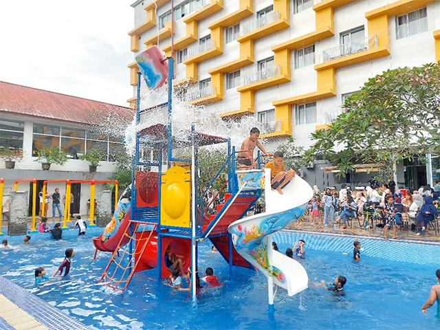 Kids Pool Playground didesain sangat ramah anak dengan dilengkapi berbagai wahana air, diantaranya waterslide (seluncuran air), tipping bucket (ember tumpah) dan water tunnel (lorong air). Tentunya wahana ini dibangun agar anak-anak yang berkunjung semakin senang dan puas menghabiskan waktu selama berenang