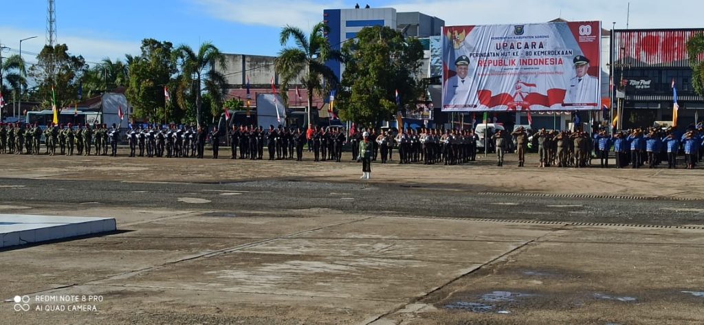 Aimas, TP – Upacara peringatan Hari Ulang Tahun (HUT) ke-80 Kemerdekaan Republik Indonesia berlangsung khidmat di Alun-alun Aimas, Kabupaten Sorong, Minggu (17/8/2025).