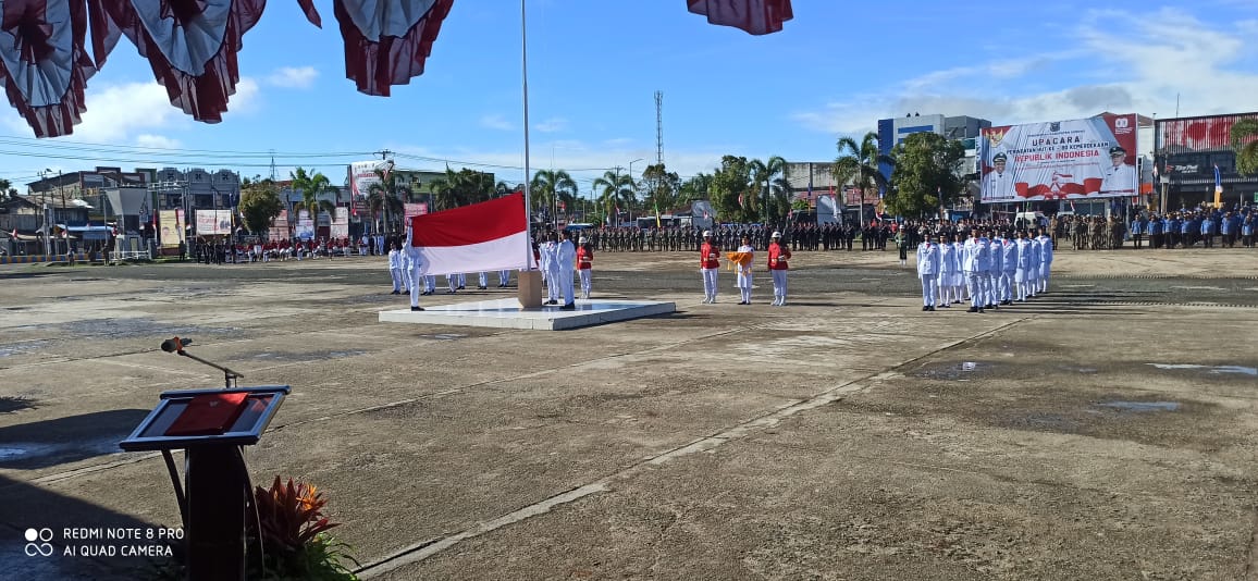 Aimas, TP – Upacara peringatan Hari Ulang Tahun (HUT) ke-80 Kemerdekaan Republik Indonesia berlangsung khidmat di Alun-alun Aimas, Kabupaten Sorong, Minggu (17/8/2025).