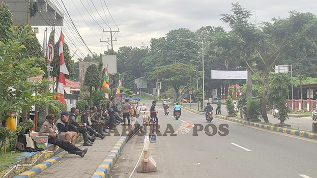 Tamapk sejumlah aparat Kepolisian melakukan pengamanan di Jalan Yos Sudarso Manokwari, Jumat (29/08). Foto : TP/AND