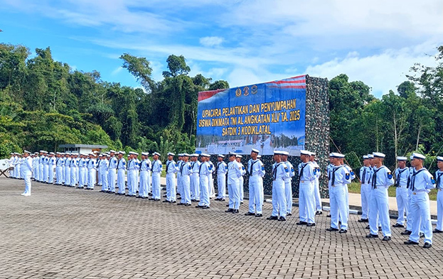 Sorong, TP – Sebanyak 99 Siswa Pendidikan Pertama Tamtama (Dikmata) TNI AL Angkatan XLV Satdik 3 Kodiklatal Sorong Tahun Anggaran 2025 mengukuti upacara pelantikan dan penyumpahan, bertempat di Mako Satdik 3, Jalan Yos Sudarso Katapop, Distrik Salawati, Kabupaten Sorong, Papua Barat Daya (PBD), Jumat (29/8/2025).