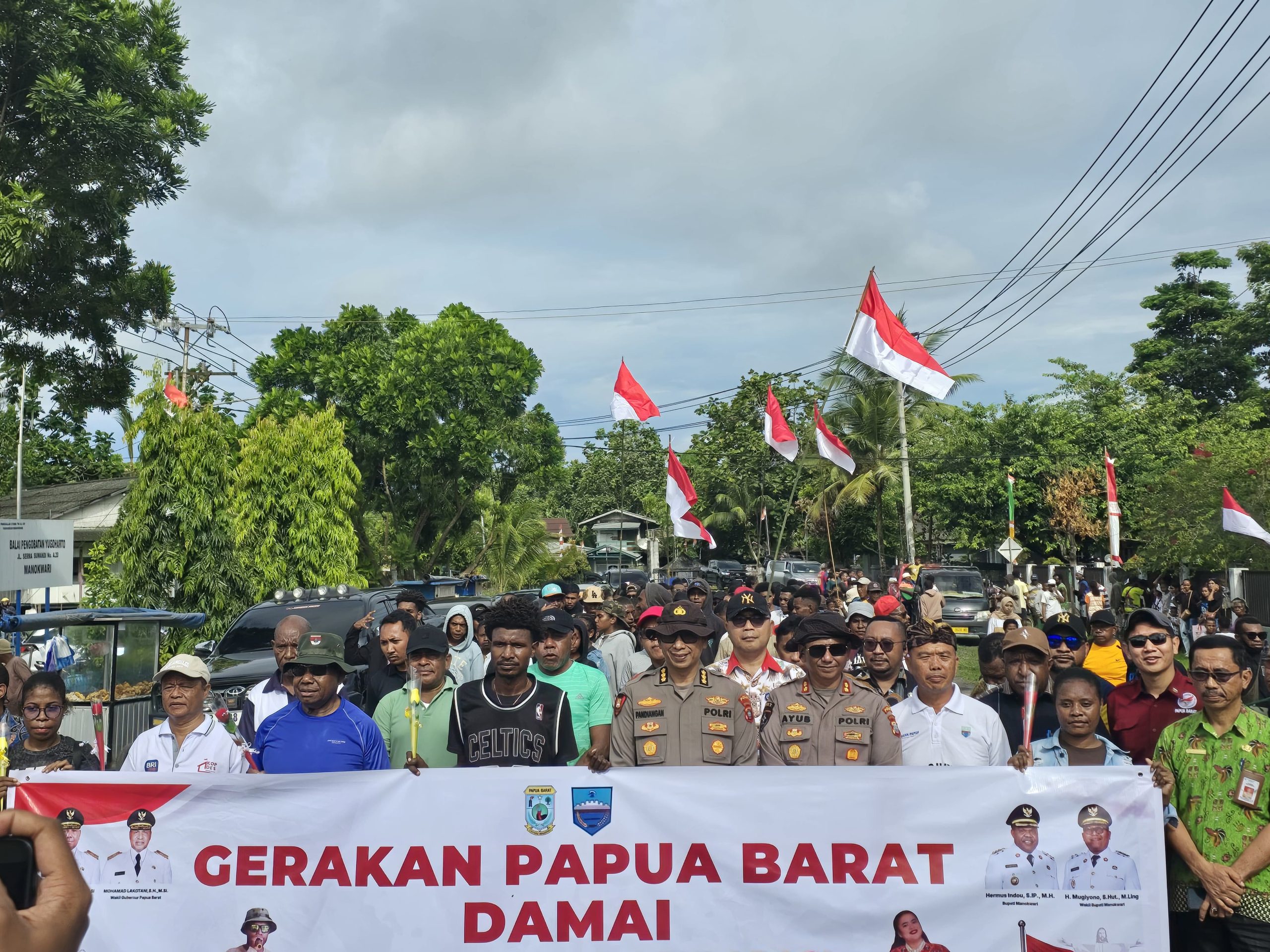 Manokwari, Papua Barat – Pemerintah Provinsi Papua Barat bersama berbagai elemen masyarakat, tokoh pemuda, mahasiswa, tokoh agama, serta Forkopimda melaksanakan kegiatan Jalan Santai dan Deklarasi Papua Barat Damai, bertempat di Kabupaten Manokwari. Kegiatan ini berlangsung mulai pukul 14.00 hingga 17.00 WIT dengan diikuti sekitar 500 peserta. Kamis (4/9)
