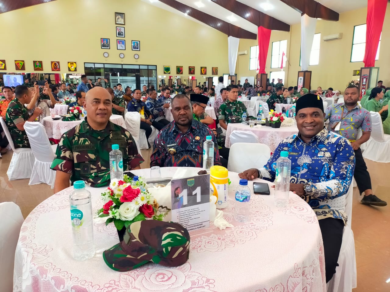 Ransiki, TP – Bupati Manokwari Selatan, Bernard Mandacan, S.IP, menghadiri acara ramah tamah penyambutan Pangdam XVIII/Kasuari, Mayjen TNI Christian Kurnianto Tehuteru, bersama Ketua Persit KCK Daerah XVIII/Kasuari, Ny. Mevi Christian K. Tehuteru, di Aulla Makodam XVIII/Kasuari, di Arfai, Manokwari, Papua Barat, Kamis (11/9).
