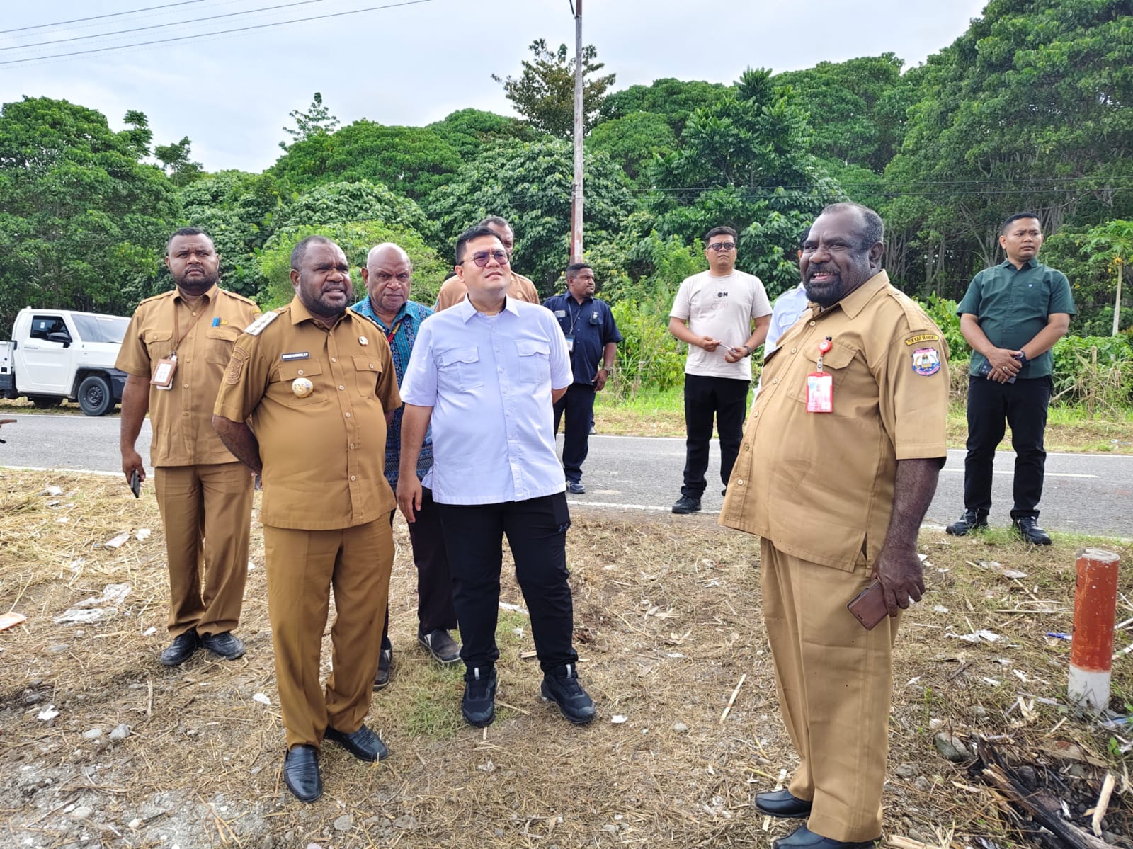 Peninjauan dilakukan oleh Bupati Mansel, Bernard Mandacan, dan rombongan guna memastikan kesiapan di lapangan menyambut kunker Wamen Transmigrasi, Viva Yoga Mauladi. [BOM-R2]
