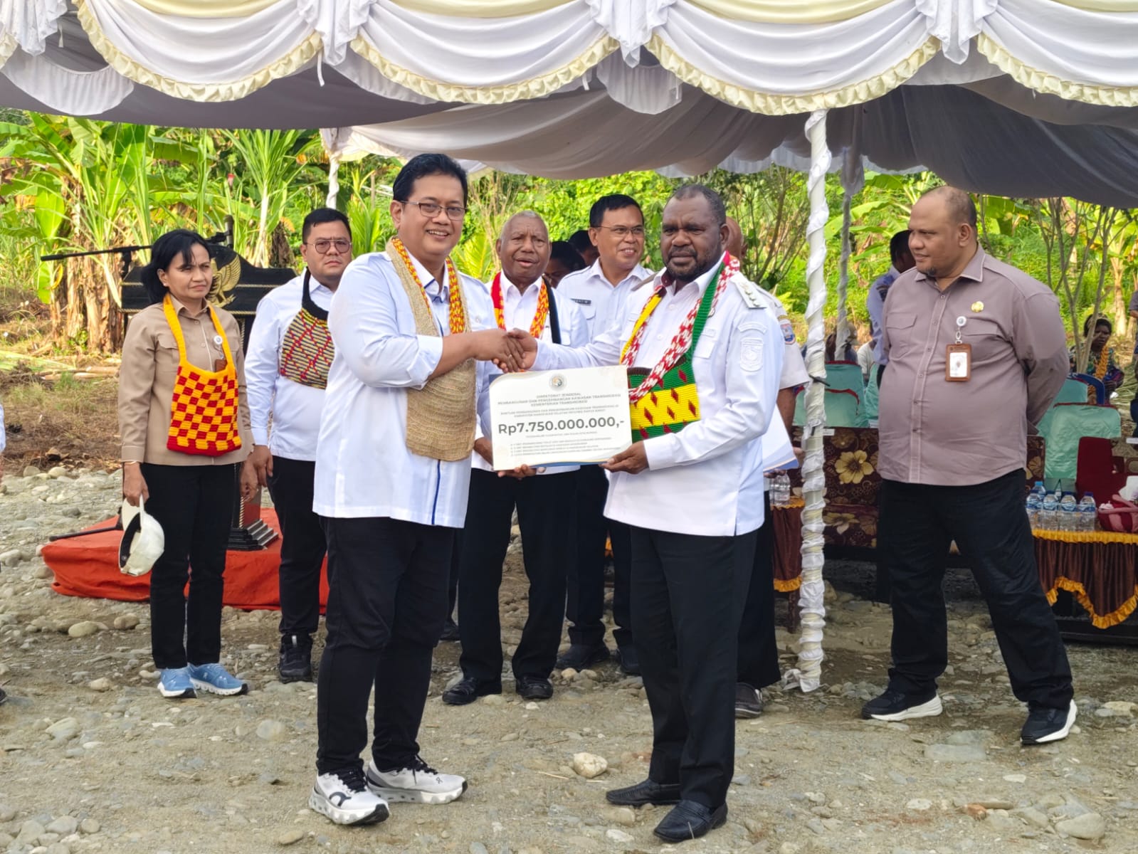 Bantuan dana APBN ABT Tahun Anggaran 2025, diserahkan Wakil Menteri (Wamen) Transmigrasi RI, Drs. Viva Yoga Mauladi, M.Si, secara simbolis kepada Gubernur Papua Barat, Drs. Dominggus Mandacan, M.Si., dan Bupati Mansel, Bernard Mandacan, S.IP., saat kunjungan kerja di lokasi persiapan transmigrasi lokal, SP. Simbrinut Inggarou Kampung Abreso, Distrik Ransiki, Kabupaten Mansel, Rabu (17/9) sore.