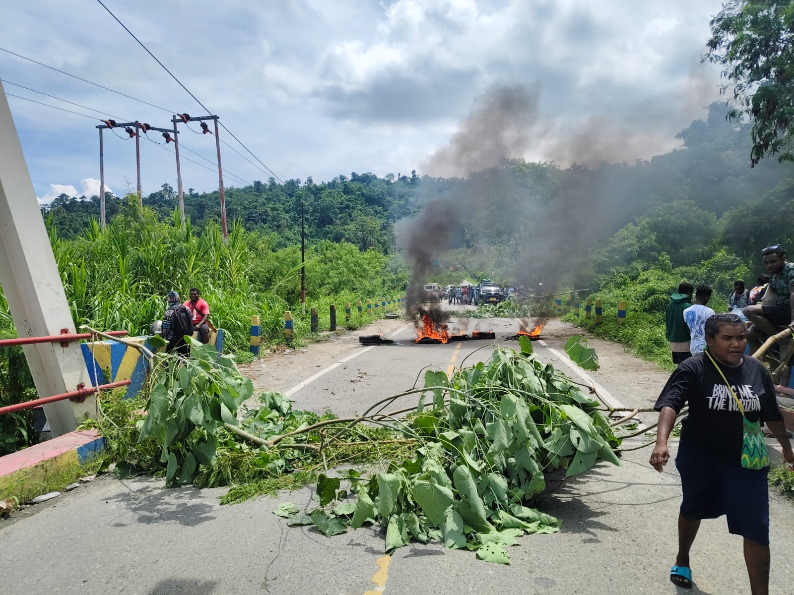 Ransiki, TP – Warga Kabupaten Manokwari Selatan (Mansel) melakukan pemalangan jalan dan membakar ban di Ruas Jalan Trans Papua Barat, tepatnya di Jembatan Kali Mati, Kampung Sabri, Kabupaten Mansel, Kamis (18/9), sekitar pukul 11.45 WIT.