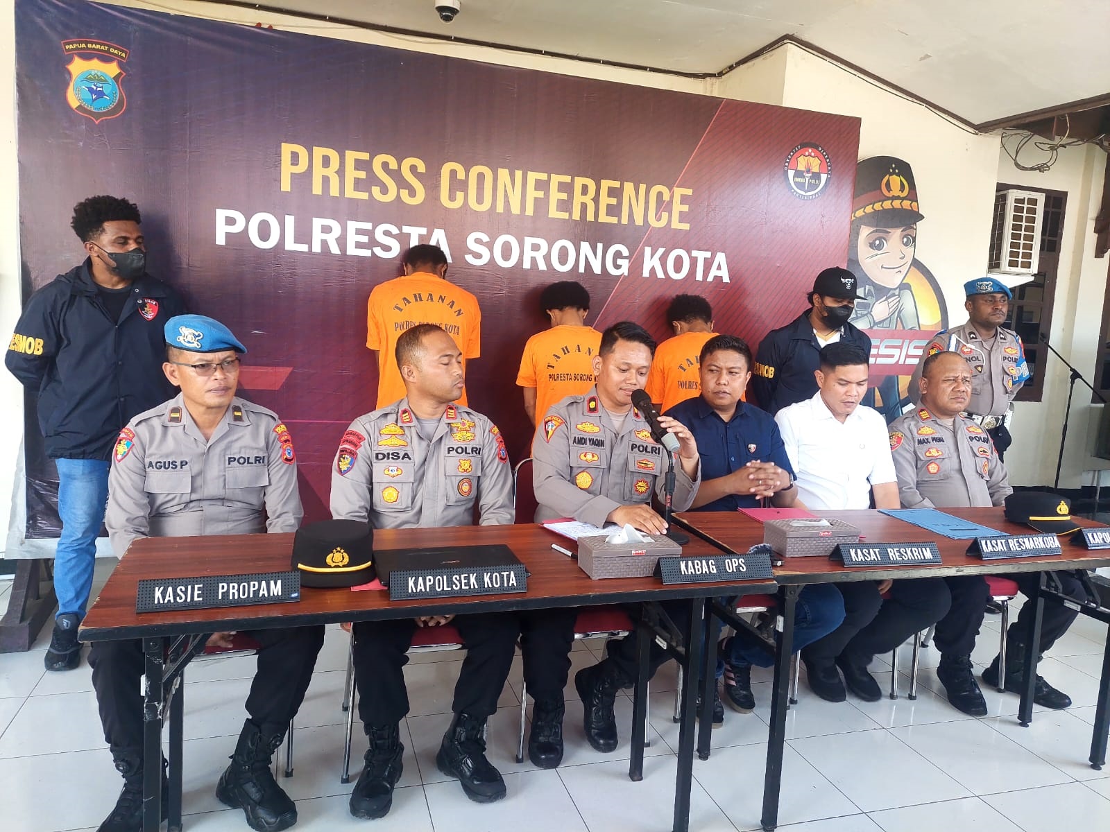 Dalam press conference kali ini, jajaran personel Polresta Sorong Kota berhasil mengungkap beberapa kasus tindak kriminalitas, diantaranya kasus pencurian sepeda motor (Curanmor), lasus pencurian dengan kerasan (Curas) serta kasus minuman keras (Miras) ilegal.