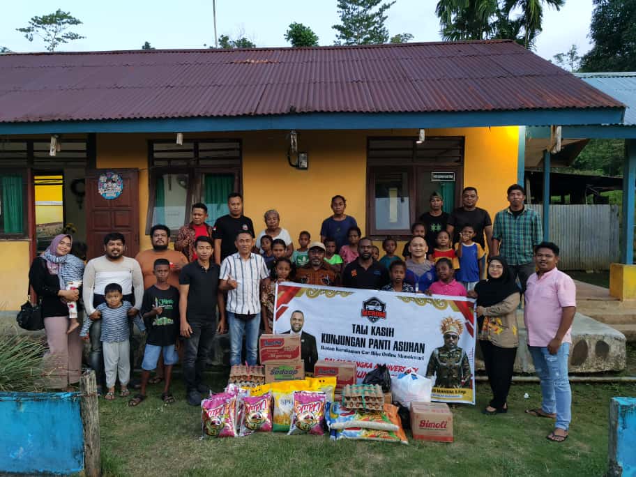 Ransiki, TP – Ikatan Kerukunan Car Bike Online Manokwari (IKCBOM) yang diketuai Yohanes Mansim, S.Kep, bersama Anggota DPD RI Dapil Papua Barat, Lamek Dowansiba Amd, Par, menyalurkan tali kasih di Pantai Asuhan Fajar Timur Pantura, Distrik Manokwari Utara, Kabupaten Manokwari, Kamis (18/9).