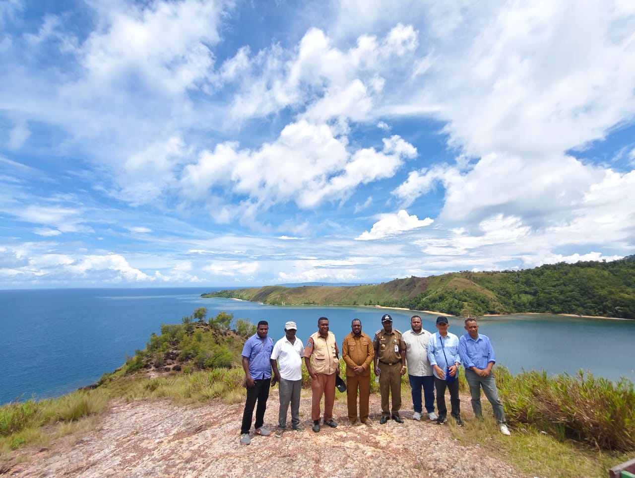 Momiwaren, TP – Bupati Manokwari Selatan, Bernard Mandacan, S.IP, bersama Kepala Dinas Pariwisata dan Ekonomi Kreatif Kabupaten Mansel, Yakobus Ramar, dan tiga Kepala Distrik bersama konsultan meninjau lokasi pengembangan pariwisata baru di Kampung Induk Yekwandi, Distrik Momiwaren, Kabupaten Manokwari Selatan (Mansel), Selasa (23/9).