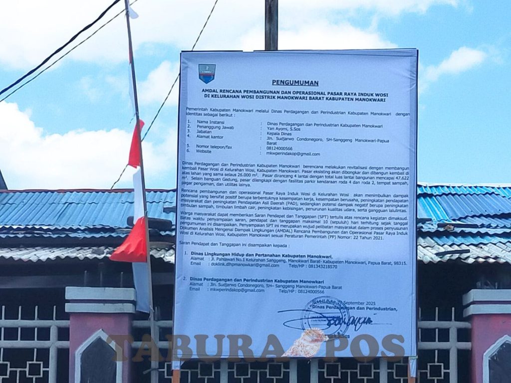 Manokwari, TP – Pemerintah Kabupaten (Pemkab) Manokwari, memberikan ruang bagi masyarakat untuk memberikan Saran, Pendapat, dan Tanggapan (SPT) terhadap rencana pembangunan Pasar Raya Induk Wosi (PRIW).