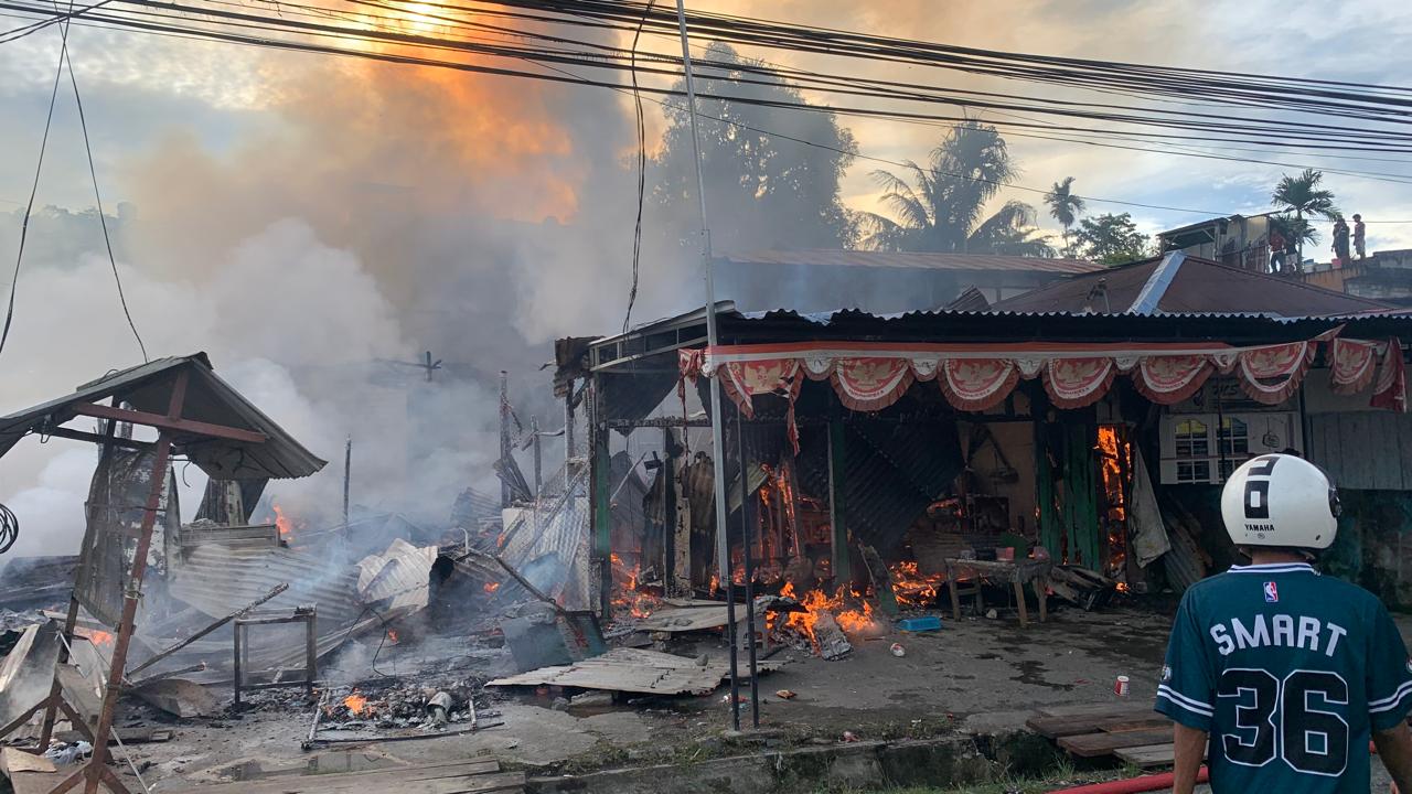 “Api berasal dari salah satu tempat jualan. Mereka sedang memasak, sementara didekatnya ada yang jual bensin. Motor-motor yang ada di bengkel itu beberapa ikut terbakar, habis semua,” ungkap seorang warga yang identitasnya tidak mau disebutkan.