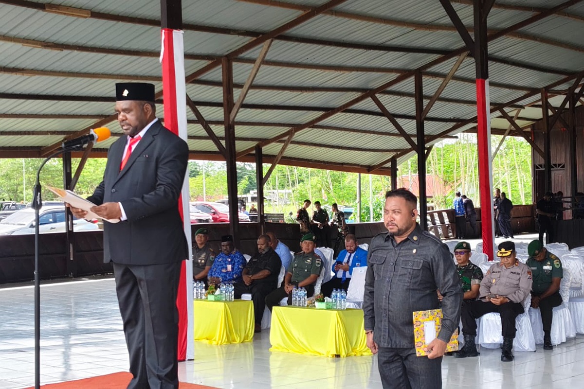 Petugas pengibar Bendera Sang Saka Merah Putih, Alvian dan Casper Aiba siswa SMA Negeri 1 Ransiki, dan Supri Trirbo siswa SMA Negeri Momiwaren. Pada kesempatan itu, Bupati Mansel, Bernard Mandacan, menyampaikan Pidato Menpora RI, Erick Thohir yang berbunyi sebagai berikut.