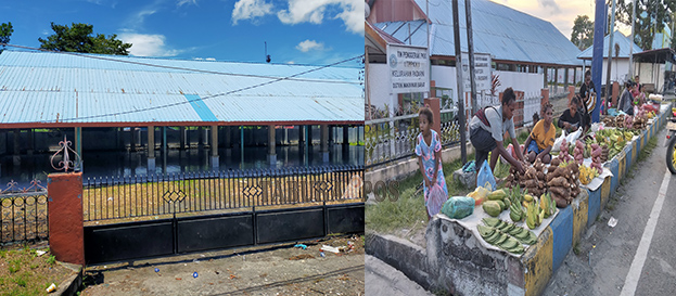 Ironisnya, di samping bangunan yang bagus tersebut, para penjual sayuran yang mayoritas mama-mama Papua, masih berjualan di atas emperan beralaskan karung.