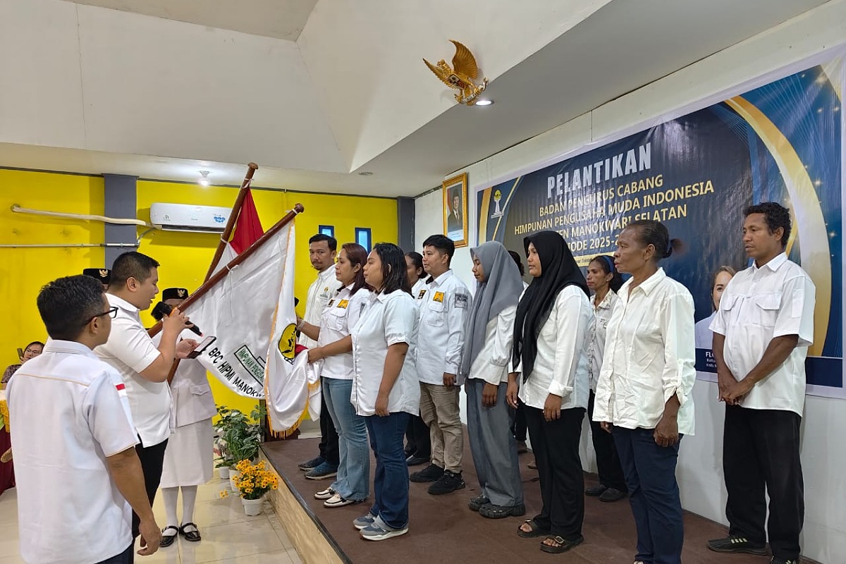 Ransiki, TP – Ketua Umum Badan Pengurus Daerah (BPD) Himpunan Pengusaha Muda Indonesia (HIPMI) Papua Barat, William Heinrich, resmi melantik Floura Minor sebagai Ketua HIPMI Kabupaten Manokwari Selatan (Mansel) Periode 2025-2028, di dampingi Haeder Ali sebagai Sekretaris dan Marlon Mayor sebagai Bendahara.