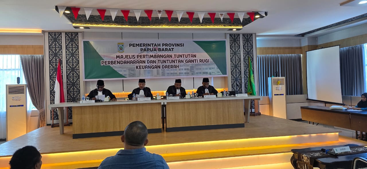 Manokwari, TP – Majelis Pertimbangan Tuntutan Perbendaharaan dan Tuntutan Ganti Rugi (MPTPTGR) Papua Barat menghadirkan tiga Direktur Perusahaan rekanan Dinas Perhubungan (Dishub) Papua Barat pada sidang Tuntutan Ganti Rugi (TGR) di Kantor Inspektorat Papua Barat, Jumat (7/11/2025).