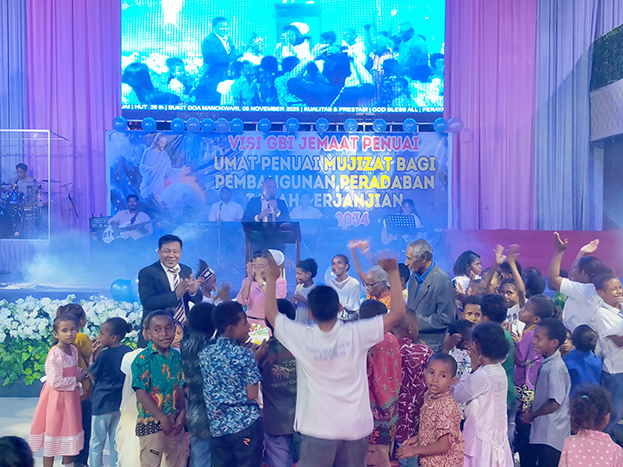 Ibadah dan perayaan HUT GBI Penuai ke-26 dan Yayasan Bara Api Penuai ke-20 di Auditorium Penuai, Manokwari, Sabtu (8/11/2025). TP/SDR
