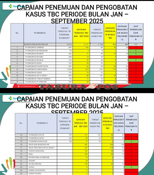 Manokwari, TP – Dinas Kesehatan (Dinkes) Kabupaten Manokwari menemukan 824 kasus Tuberculosis (TBC) sepanjang Januari hingga September 2025.
