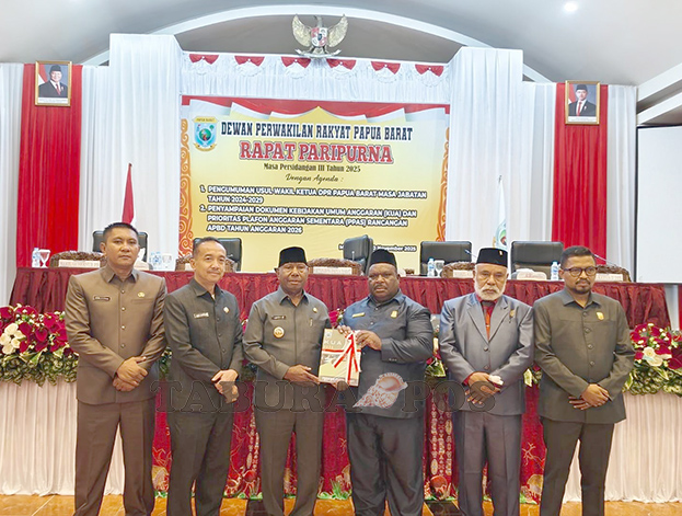 Dokumen KUA-PPAS APBD 2026 itu diserahkan Gubernur Papua Barat, Drs. Dominggus Mandacan dalam Rapat Paripurna DPR Papua Barat yang dipimpin oleh Wakil Ketua I Petrus Makbon, didampingi Ketua DPR Papua Barat, Orgenes Wonggor dan Wakil Ketua II Syamsudin Seknun, di Aston Niu Hotel Manokwari, Kamis (20/11/2025).