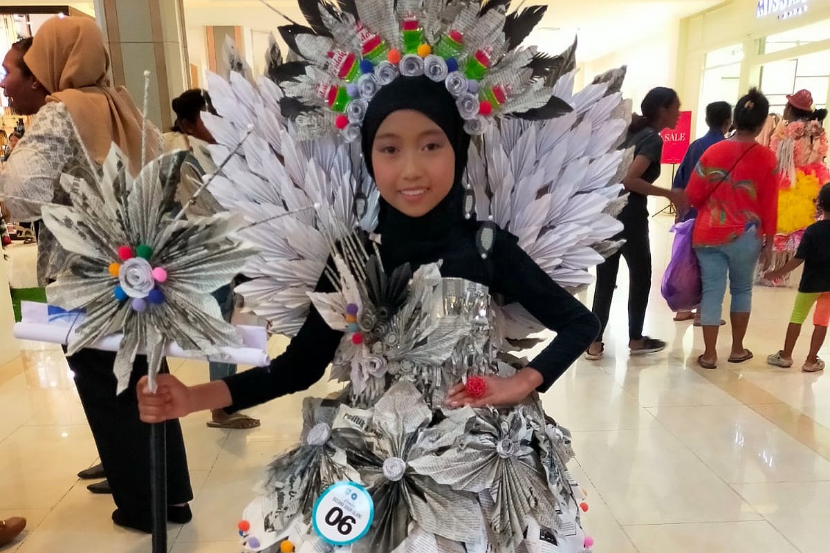 Berbagai keunikan busana dari bahan daur ulang ditampilkan para peserta baik anak-anak maupun remaja saat berjalan di atas panggung.