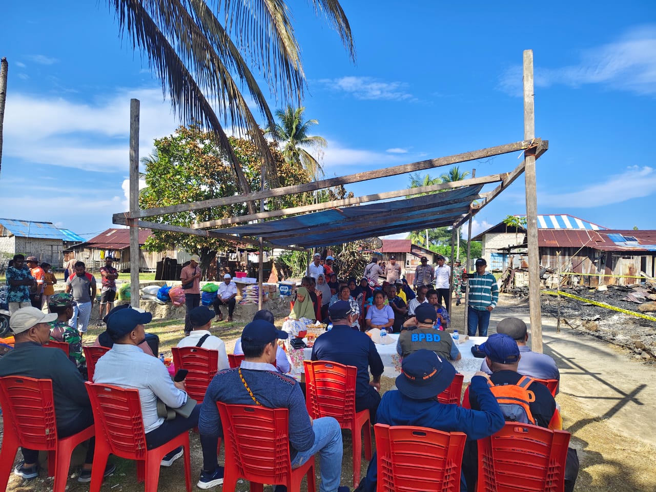 Kegiatan tersebut dihadiri oleh Kepala Dinas Sosial Kabupaten Fakfak Sadali Lahadalia, S.Sos., M.Si bersama pimpinan OPD terkait, Anggota DPRD Fakfak, Kepala Kampung Malakuli, personel Polsek Karas dan Koramil Karas, serta para korban kebakaran bersama para Tokoh Adat, Tokoh Masyarakat, Tokoh Agama setempat.