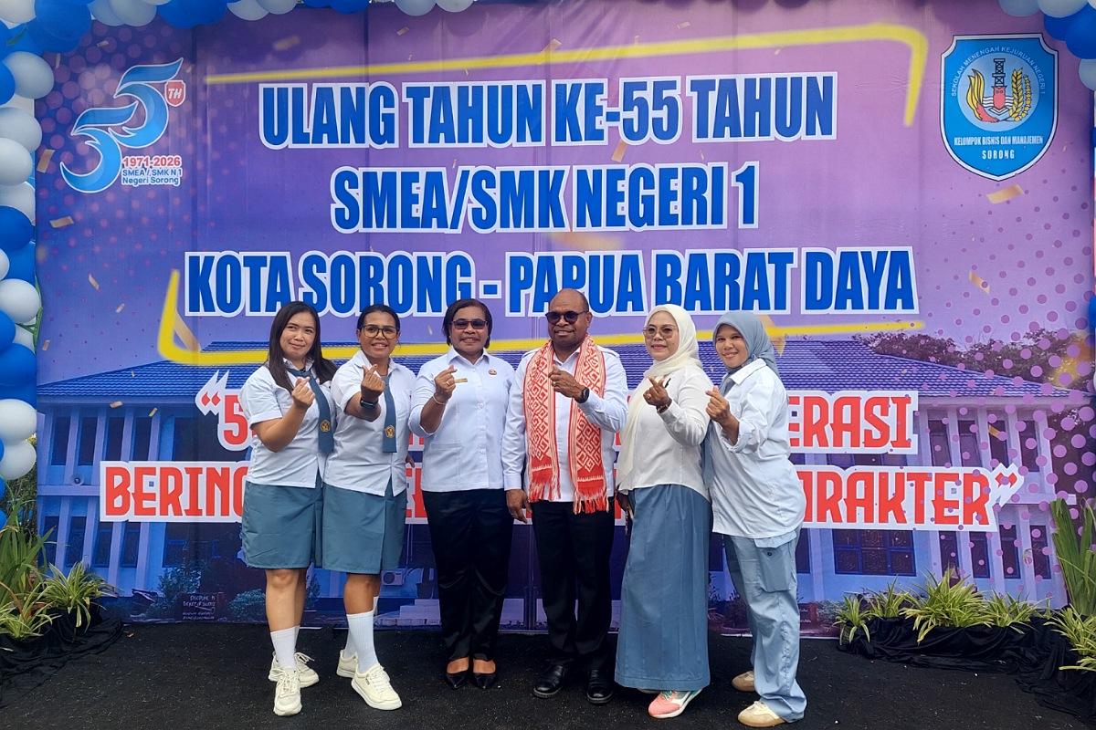 Sorong, TP – Sekolah Menengah Kejuruan (SMK) Negeri 1 Kota Sorong, atau yang dulunya dikenal sebagai Sekolah Menengah Ekonomi Atas (SMEA), merayakan Hari Ulang Tahun (HUT) ke-55 dengan meriah. Puncak perayaan diawali dengan upacara yang dipimpin langsung oleh Wali Kota Sorong, Septinus Lobat, di lapangan utama sekolah, Rabu (11/2/2026).