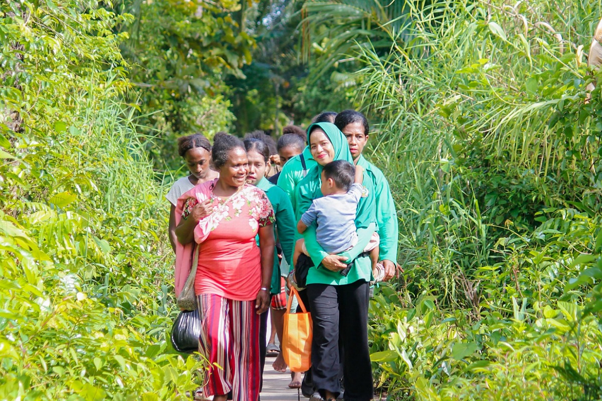 Kaimana, TP – Ketua Persit Kartika Chandra Kirana (KCK) Cabang XL Koorcabrem 182 PD XVIII/Kasuari, Ny. Kiky Sulistyo, bersama anggota Persit KCK Cabang XL Kodim 1804/Kaimana, aktif mendukung pelaksanaan Program TNI Manunggal Membangun Desa (TMMD) Ke -127 di Kampung Sisir, Kabupaten Kaimana, Papua Barat.
