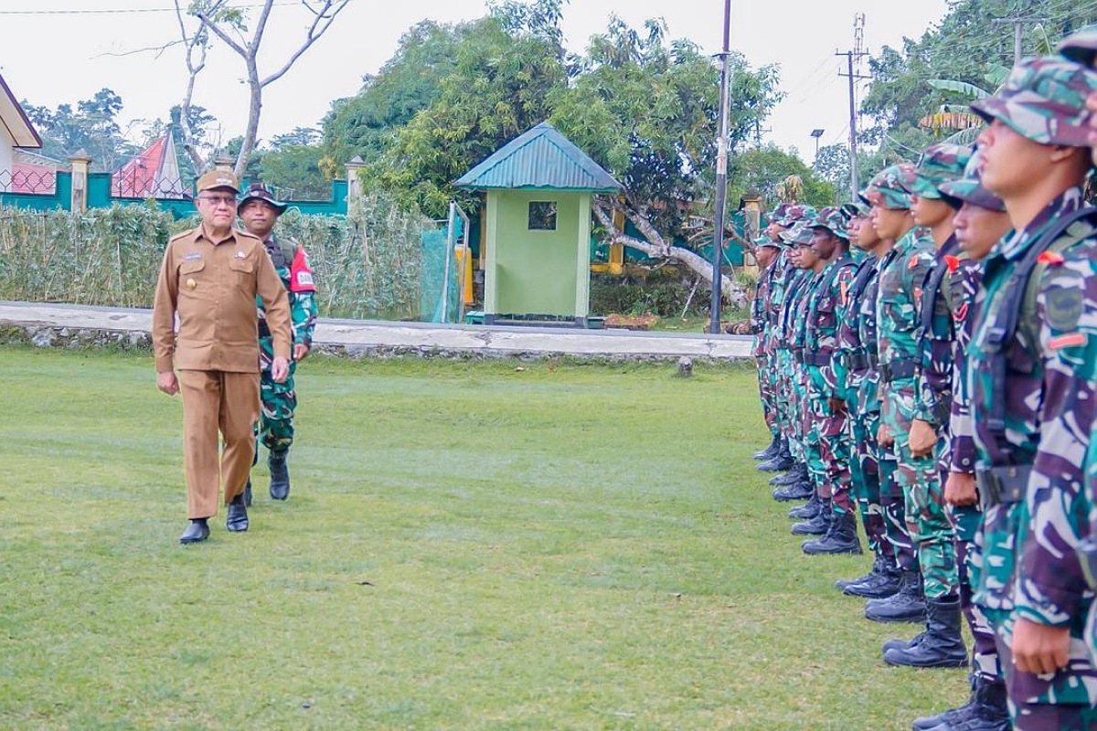 Bupati Kaimana, Drs. Hasan Achmad, M.Si saat mengecek kesiapan personel dalam rangka pelaksanaan TMMD Ke-127 di Kampung Marsi, dan Sisir Kaupaten Kaimana pada pada hari Selasa (10/2/2026) di Makodim 1804/Kaimana. Foto: TP/IST