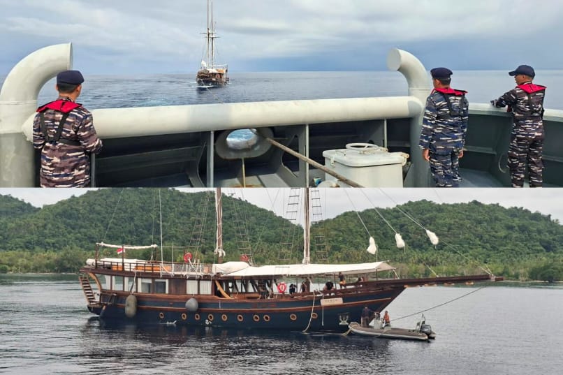 Kapal TNI AL Bantu Evakuasi Kapal Pesiar KLM Sanya Pacific High di Perairan Raja Ampat