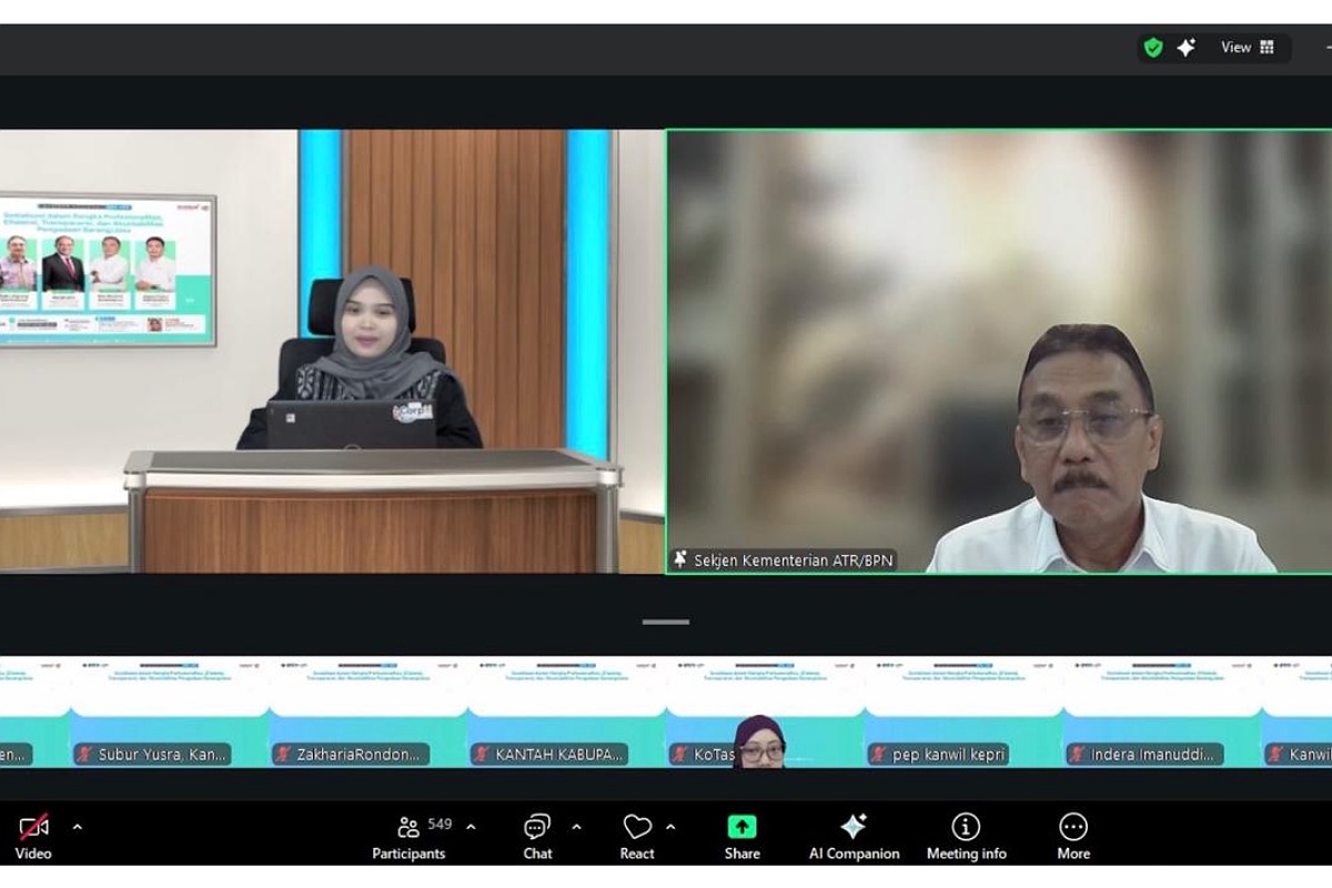 Jakarta, TP – Kementerian Agraria dan Tata Ruang/Badan Pertanahan Nasional (ATR/BPN) menggelar Webinar Nasional bertajuk “Sosialisasi dalam Rangka Profesionalitas, Efisiensi, Transparansi, dan Akuntabilitas Pengadaan Barang/Jasa” pada Kamis (05/03/2026). Sebagai pembicara kunci, Sekretaris Jenderal (Sekjen) ATR/BPN, Dalu Agung Darmawan, menegaskan dalam pengadaan barang/jasa, seluruh Kuasa Pengguna Anggaran (KPA) satuan kerja (Satker) perlu mengedepankan prinsip transparansi dan tanggung jawab.