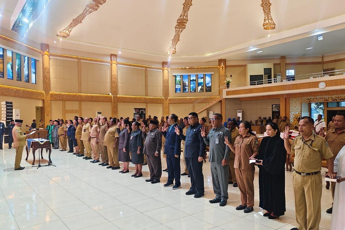 “Sisanya telah kita usulkan kembali dan puji Tuhan hari ini kita lantik 17 pejabat eselon III, 14 pejabat eselon IV, serta 2 pejabat fungsional,” ucapnya sambil menyampaikan selamat kepada para pejabat yang baru dilantik setelah menyampaikan sumpah/janji.