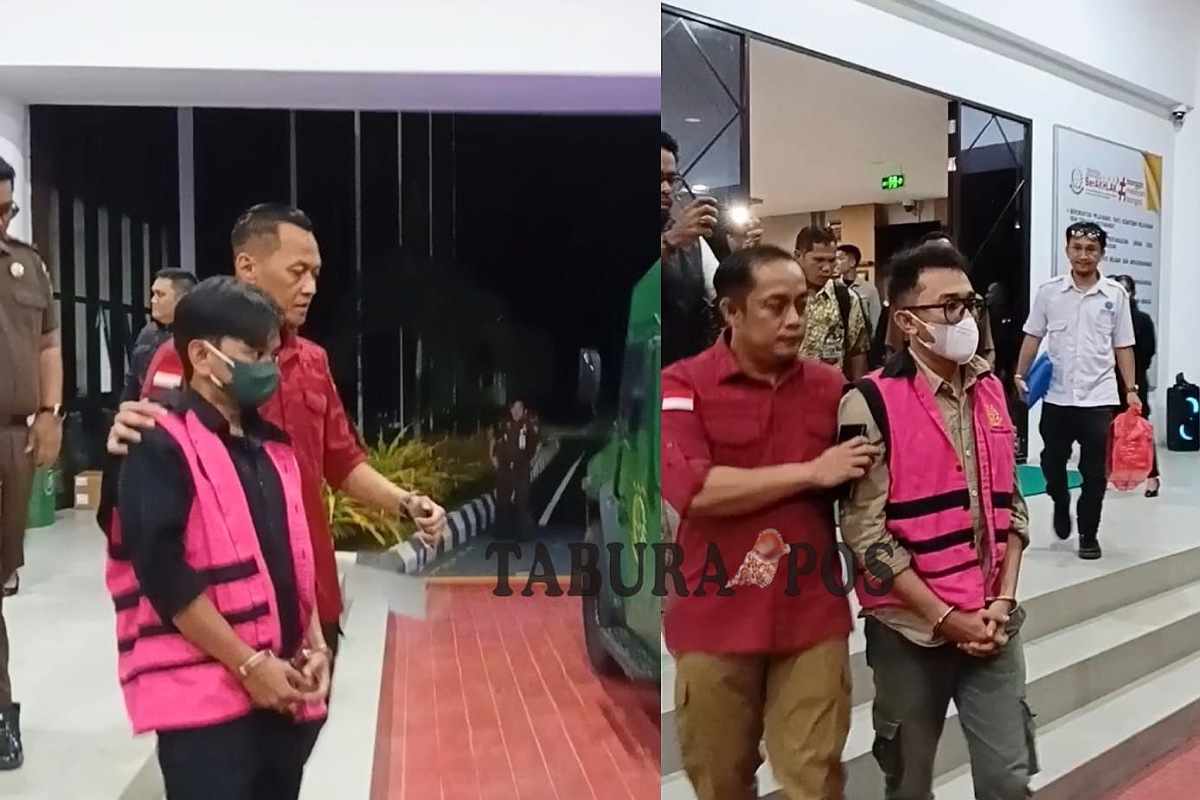 Setelah resmi ditetapkan tersangka. Penyidik Kejati Pidsus Papua Barat langsung melakukan penahanan terhadap dua petinggi PT RSU terkait dugaan Tipikor Kampus II SMK Kehutanan ke Lapas Manokwari, Rabu (15/4) malam. Foto: TP/K&K