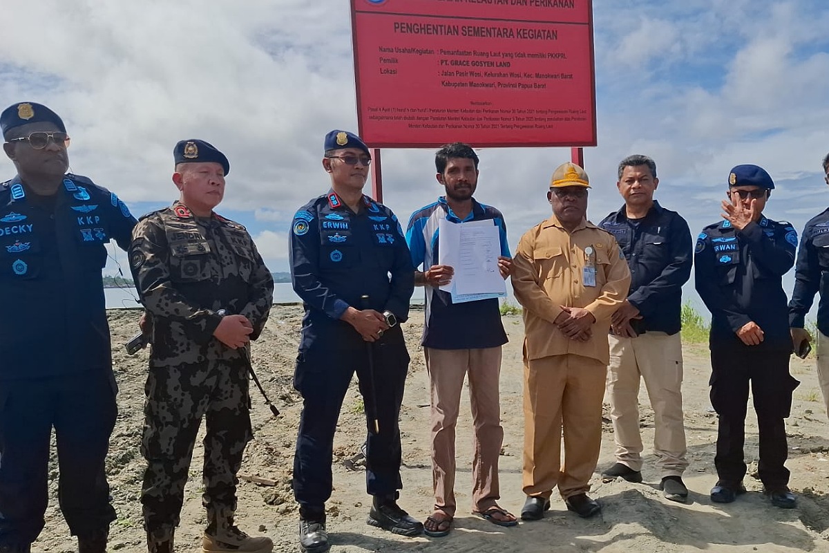 Manokwari, TP – Direktorat Jenderal Pengawasan Sumber Daya Kelautan dan Perikanan (PSDKP) Kementerian Kelautan dan Perikanan mengambil tindakan tegas dengan menghentikan sementara kegiatan reklamasi pantai dan pemanfaatan ruang laut yang dilakukan oleh PT Grace Gosyen Land di kawasan pesisir Pasar Wosi, Manokwari. Tindakan ini dilakukan pada Selasa (21/4/2026).