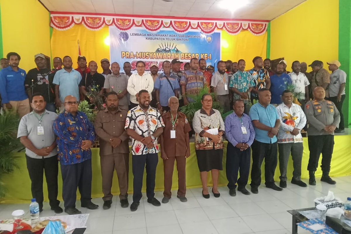 Bintuni, TP – Pemerintah Kabupaten Teluk Bintuni menyatakan dukungan penuh terhadap pelaksanaan Pra Musyawarah Besar (Mubes) I Suku Moskona. Kegiatan yang berlangsung di Jalur 9, Kampung Banjar Ausoy, Distrik Manimeri, Jumat (24/4/2026), diharapkan menjadi langkah strategis untuk memperkuat persatuan dan kesatuan seluruh elemen masyarakat adat.