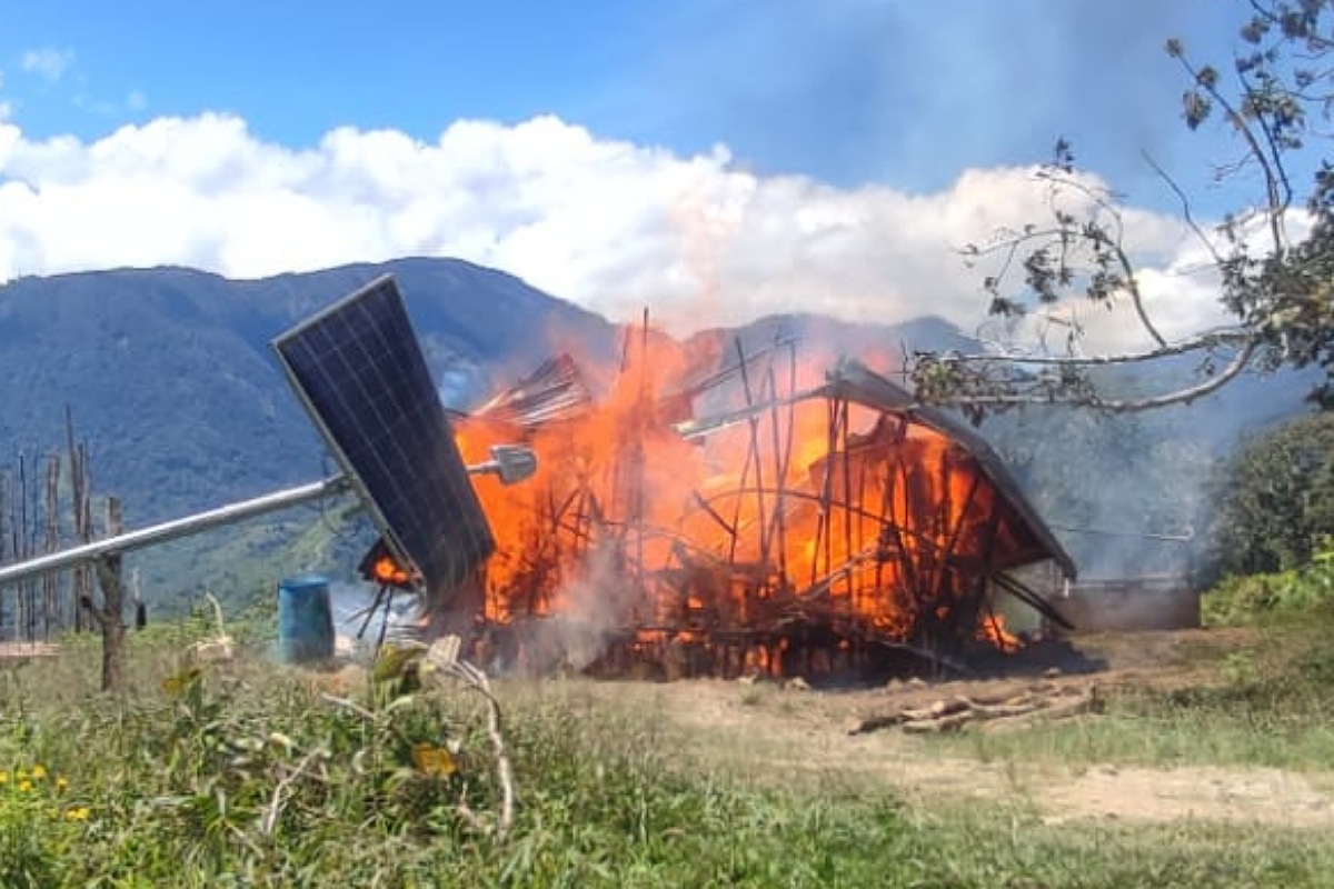 Dua rumah terbakar di Kampung Mingree, Distrik Mokwam pada Senin (27/4/2026). Foto :TP/ISt