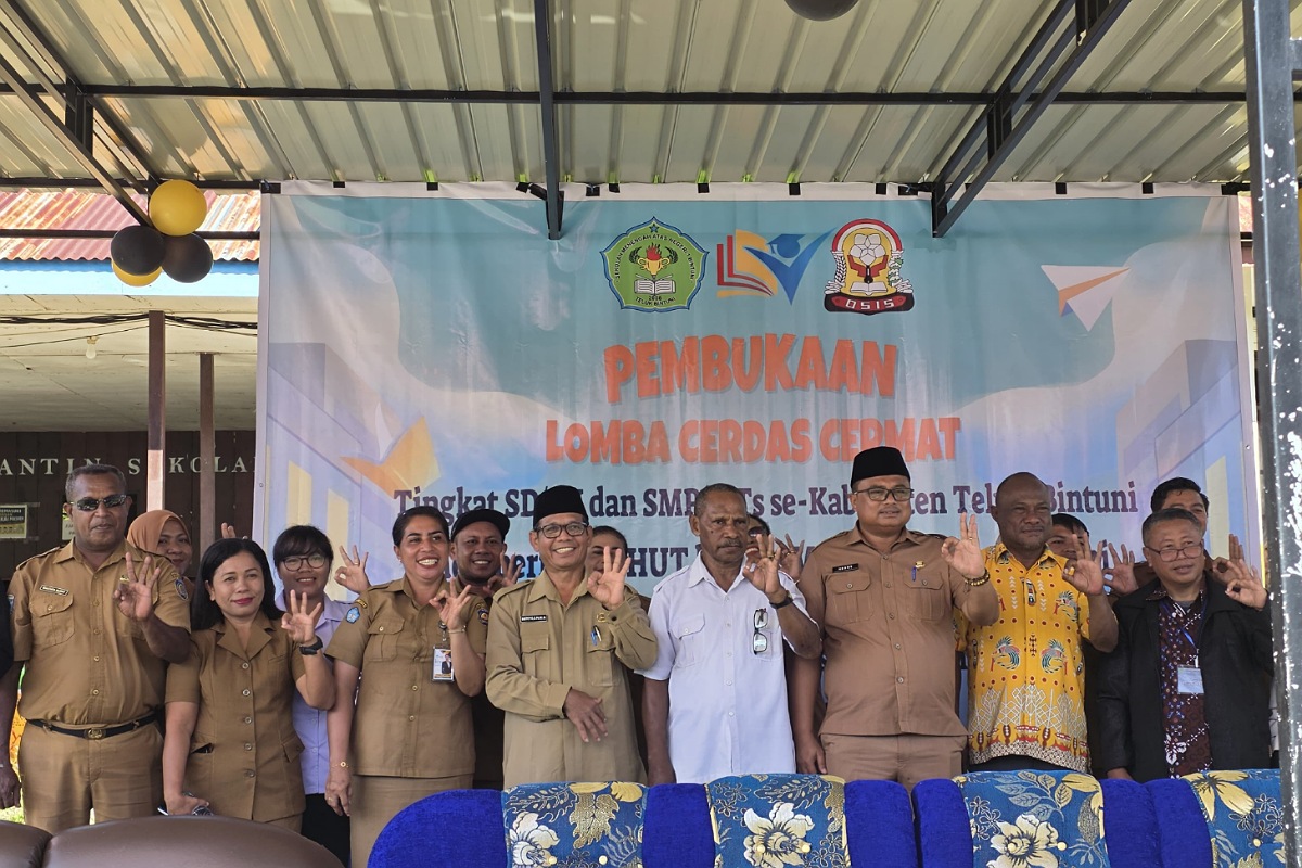 Kepala Disdikbudpora Kabupaten Teluk Bintuni Dr. Henry Donald Kapuangan, S.Pd., M.M., mewakili Bupati Yohanis Manibuy, S.E., M.H., resmi membuka kegiatan Lomba Cerdas Cermat (LCC) tingkat SD/MI dan SMP/MTs se-Kabupaten Teluk Bintuni, Selasa (28/4/2026). Foto: TP/IST