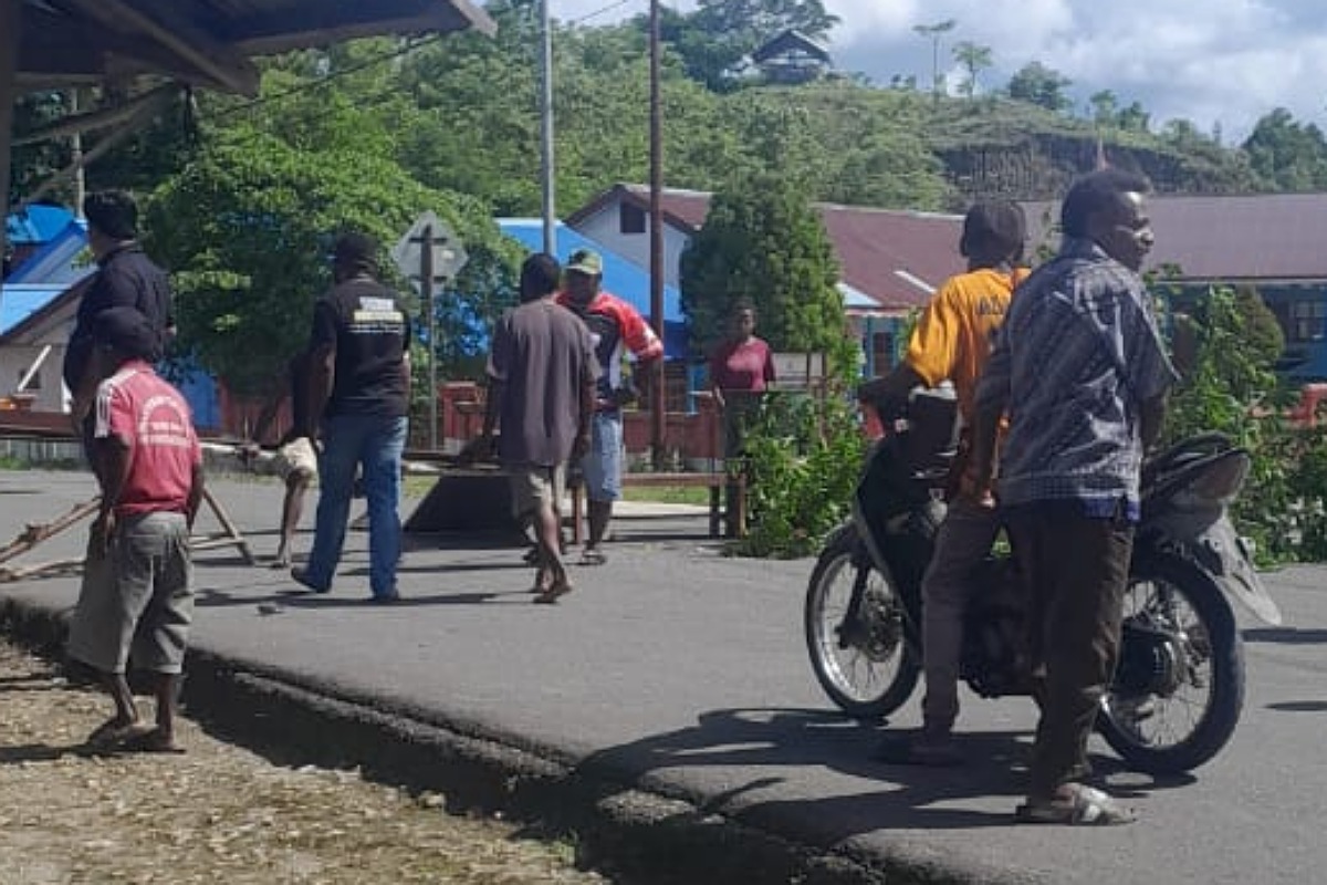 Aksi pemalangan jalan di kabupaten Maybrat, Papua Barat Daya, Selasa (28/4). Foto: TP/IST